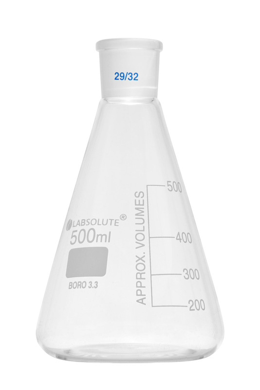Erlenmeyerkolben, mit Normschliff, Borosilikatglas 3.3, mit dauerhafter, aufgedruckter Volumenskala, 500 ml, NS 29/32, gemäß DIN EN ISO 4797, VE=1, LABSOLUTE®, 1 Stück
