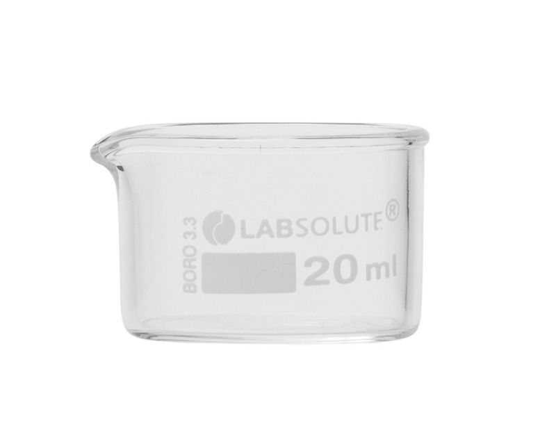 Kristallisierschale, 20 ml, Ø=40 mm, h=25,mm, aus Borosilikatglas 3.3, klar, zylindrisch,gemäß DIN 12338, mit flachem Boden und,Ausguss, VE=1, LABSOLUTE®, 1 Stück