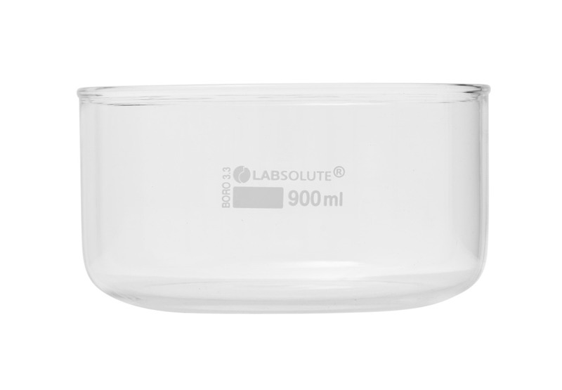 Kristallisierschale, 900 ml, Ø=140 mm, h=75,mm, aus Borosilikatglas 3.3, klar, zylindrisch,gemäß DIN 12337, mit flachem Boden, ohne,Ausguss, VE=1, LABSOLUTE®, 1 Stück