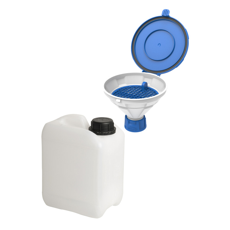 SafetyWasteSet: 1x 2,5 Liter Kanister, GL45, PE-HD, 1x Deckeltrichter ""MARCO"", V2.0, GL45, PE-HD, mit herausnehmbaren Sieb, 1 Stück
