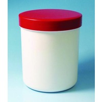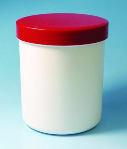 Schraubdeckeldosen 250 ml weiß, PP, mit rotem Schraubdeckel, 200g, Ø=68 mm, h=79 mm, mit Analysenzertifikat, VE=20, 20 Stück