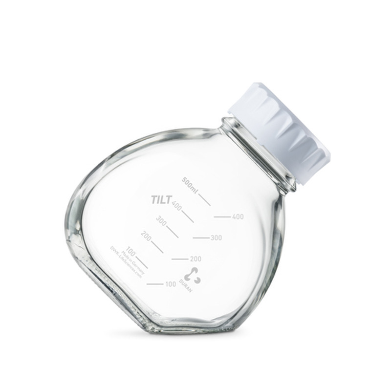DURAN® TILT Medienflasche, klar, mit Teilung, GL 56, mit weißem Schraubverschluss (PP), 500 ml (keine sterile Lieferung)