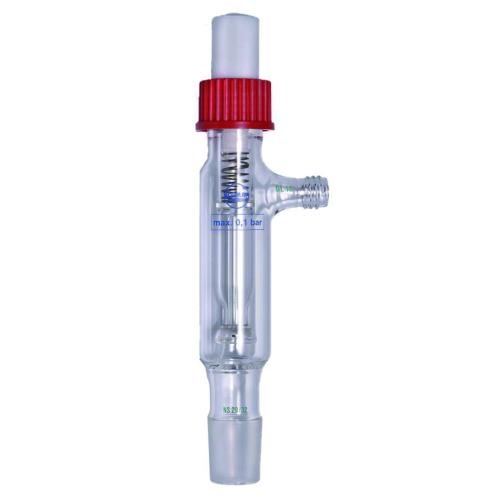 Überdruck/Rückschlagventil nach Stutz mit ferderbelastetem Kugelschliff-Verschluß, mit seitl. Ablaufstutzen,NS-K 14/23, 1 Stück